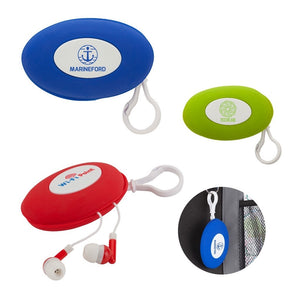These promotional earbuds have a case with a clip for added convenience. These branded earbuds will keep the podcast and music listeners happy!